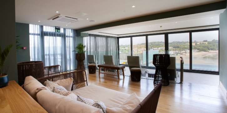Our Thermal Suite and Hydrotherapy pool is a luxurious sanctuary of calm and tranquillity with breath-taking coastal views.