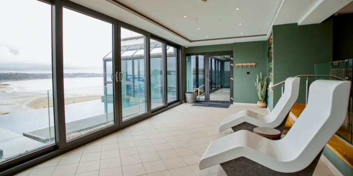 Our Thermal Suite and Hydrotherapy pool is a luxurious sanctuary of calm and tranquillity with breath-taking coastal views.